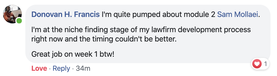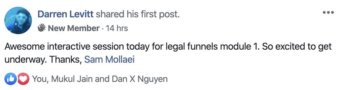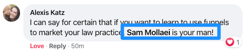 "The LegalFunnel 6 week course is that it totally exceeded my expectations because all of the resources that Sam has been providing for us went above and beyond! I'm talking like here's the exact language you need to be using as for how you're talking to your leads and actually getting your leads to sign up."